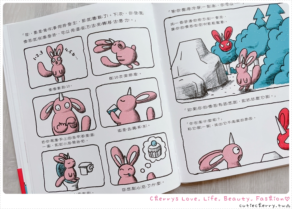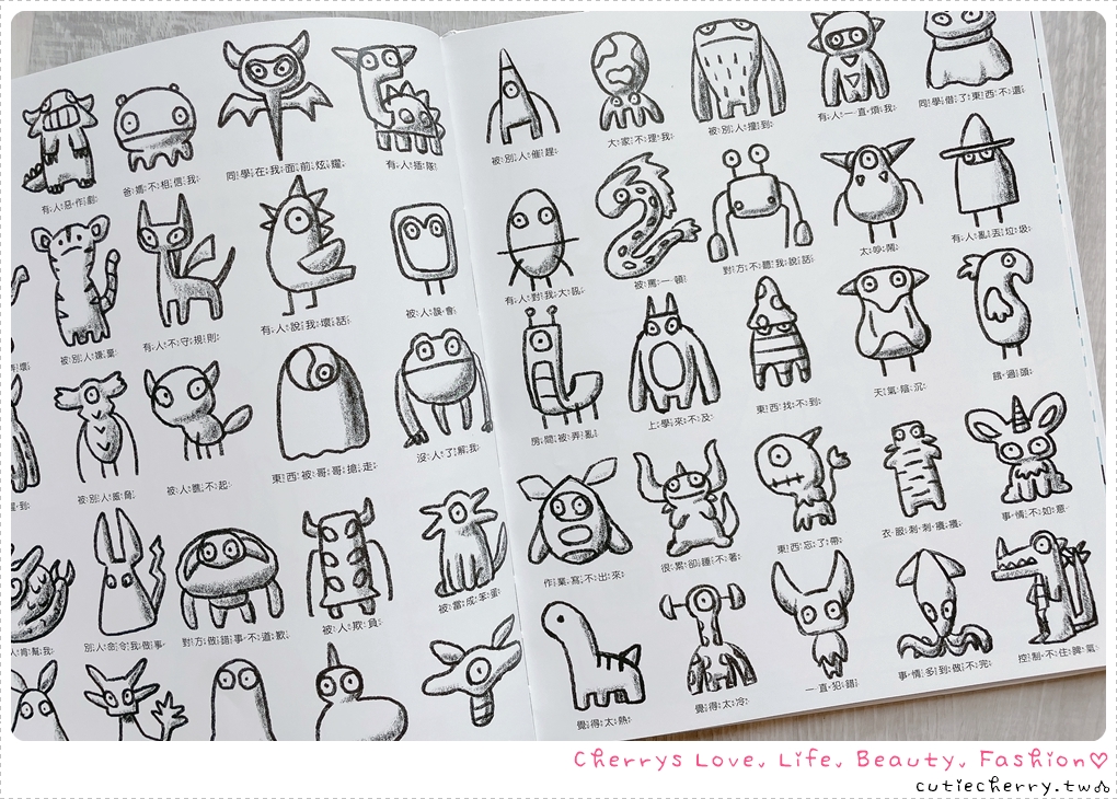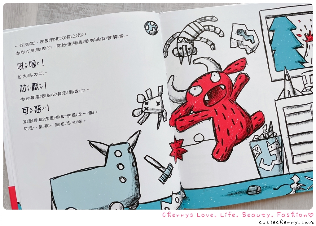 這本姊妹作《小怪獸波波利就這樣克服了怒氣》也用了滿滿跨頁呈現 50 種讓人生氣的原因